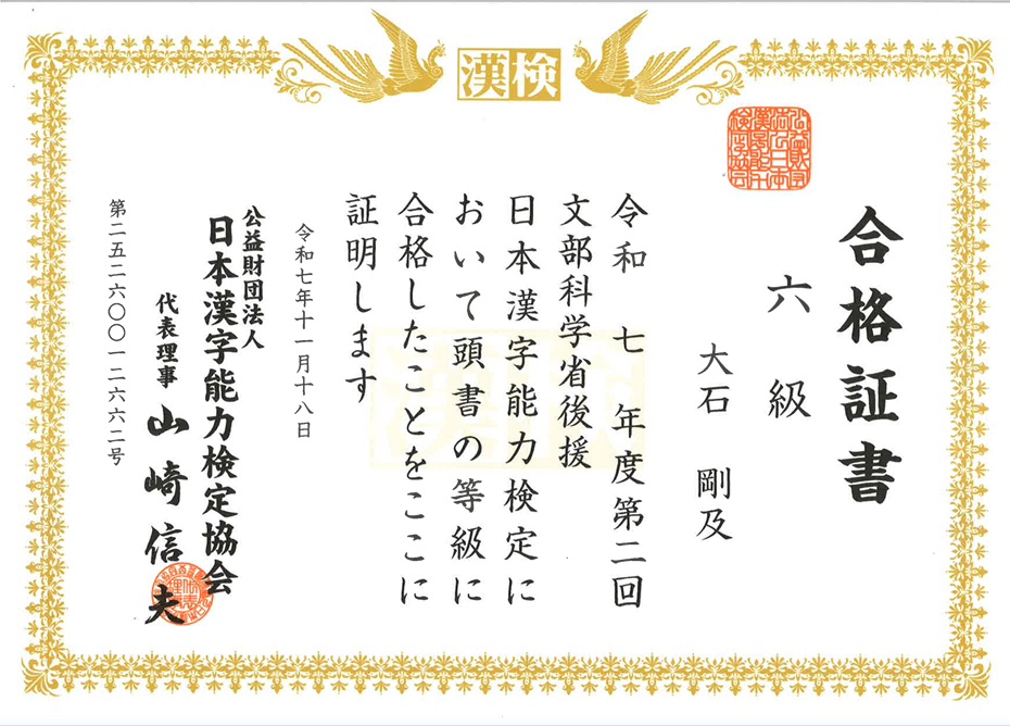 部首や筆順、三字熟語など漢字にまつわる様々な問題が出題されるとの事。社長が率先してお勉強しているので、従業員もお勉強しないと………(By部長)